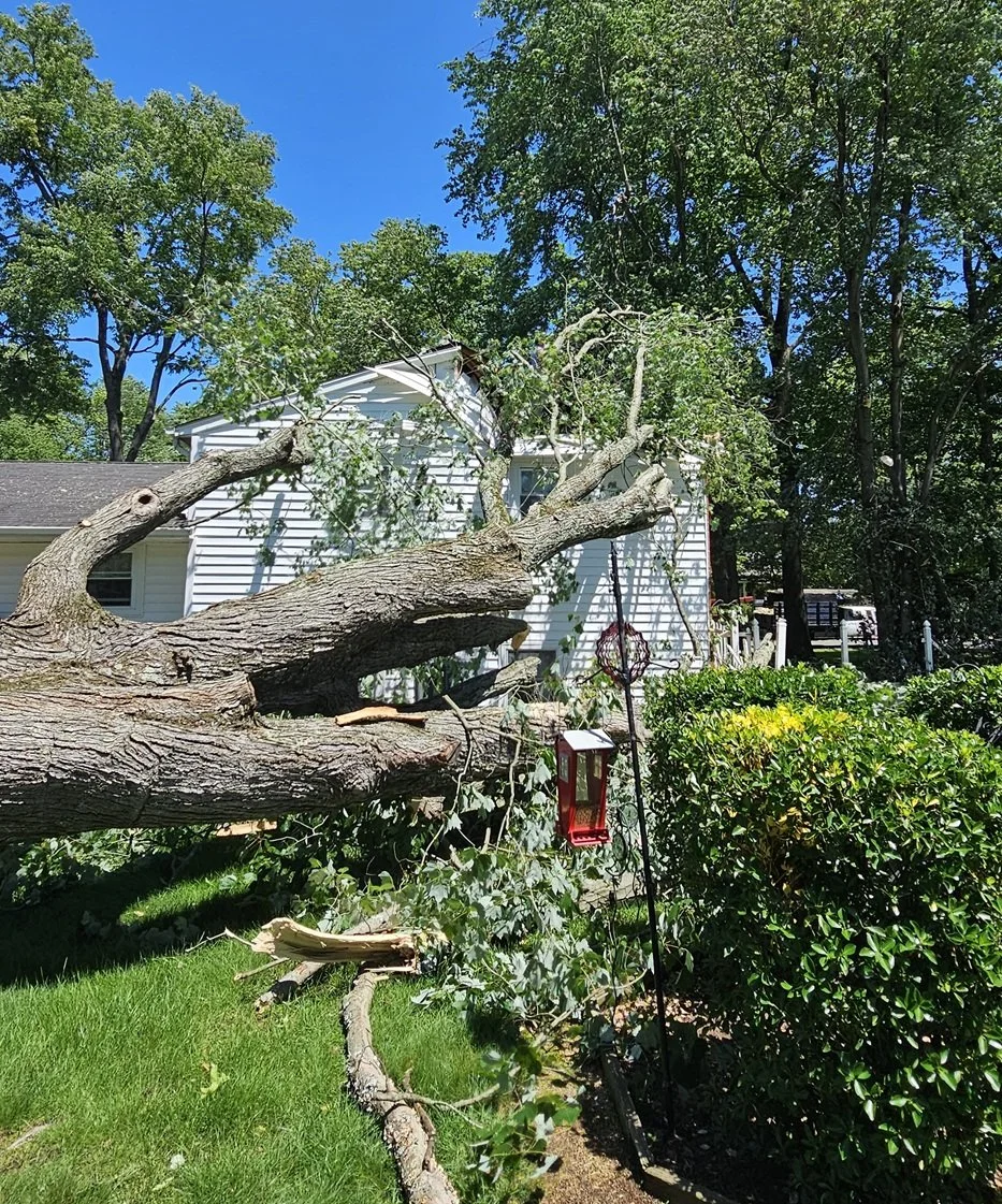 Storm damage in Alexandria, VA after a fallen tree impacted the roof, requiring immediate inspection and repair.